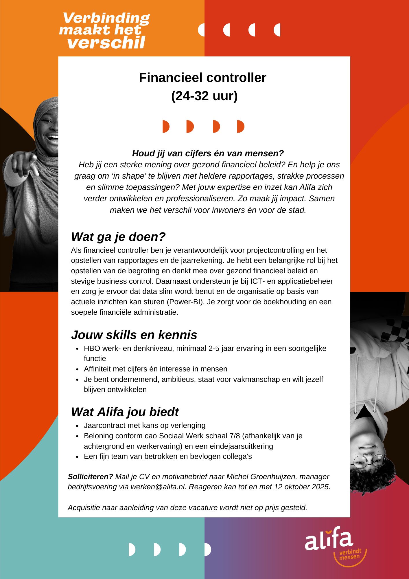 Een open sollicitatie versturen kan altijd, wij komen graag met je in contact. Stuur je motivatie en CV naar info@alifa.nl en vermeld wat je graag wilt betekenen voor Alifa.